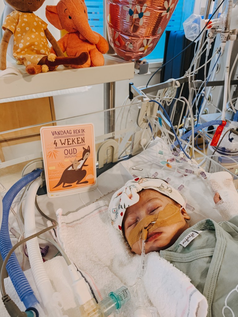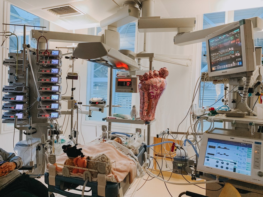Her surgeon put shunts on her pulmonary arteries and gave her a balloon treatment to improve the blood flow between her ventricles. The surgery was a success, and Evelyn could recover for now. It also meant that this intervention did buy her some time until the Norwood operation, which wasn’t planned back then, but she would get a week later, on February 8th. In between, after Intan was discharged, we went to stay at the Ronald McDonald home in Leiden. It’s amazing that these facilities exist. We didn’t stay long as we really longed for home, but we appreciate the facility so much. They also have a special floor in the hospital where children can play and parents can meet each other; we go there regularly.